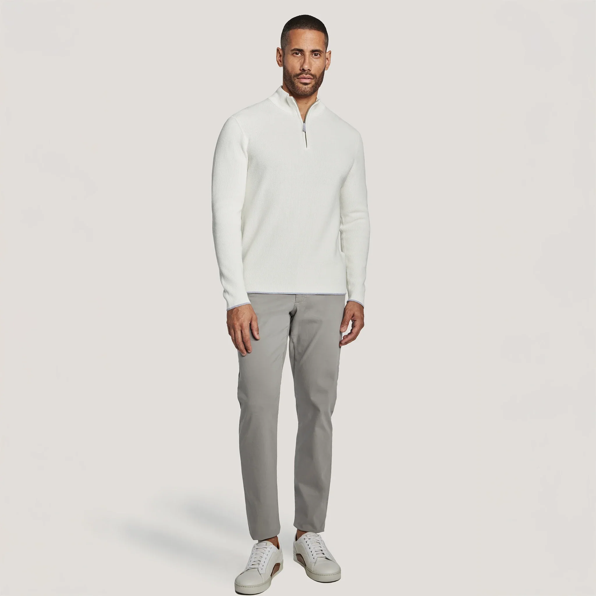 Ecru Solid Quarter Zip Cotton Sweater - Jack Victor