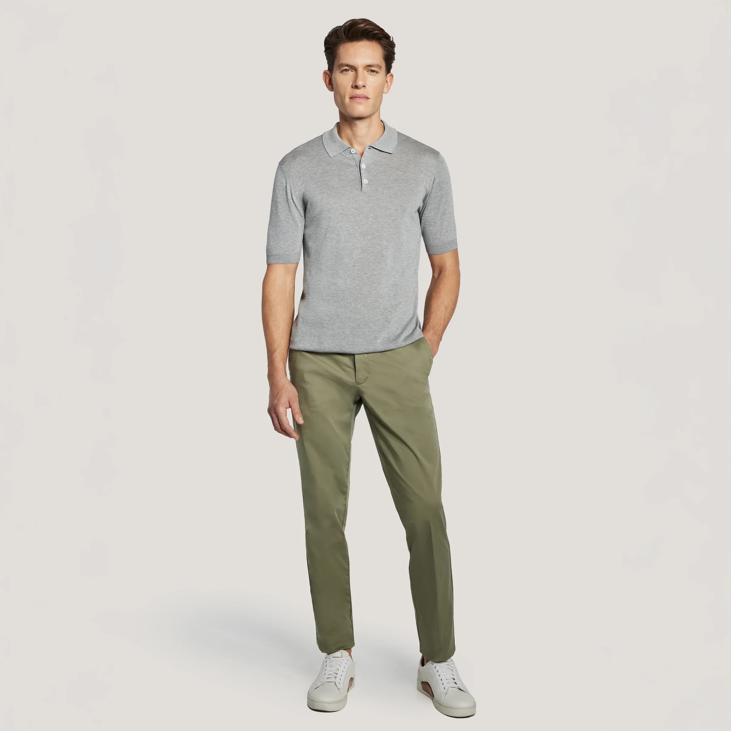 Gray Cotton Silk Knit Polo - Jack Victor