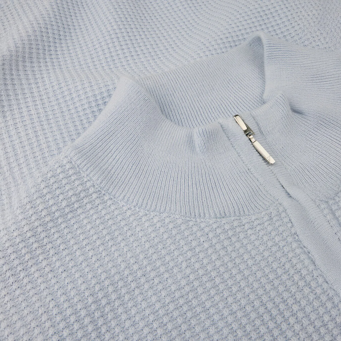 Light Blue Textured Cotton Half Zip Sweater - Stenströms