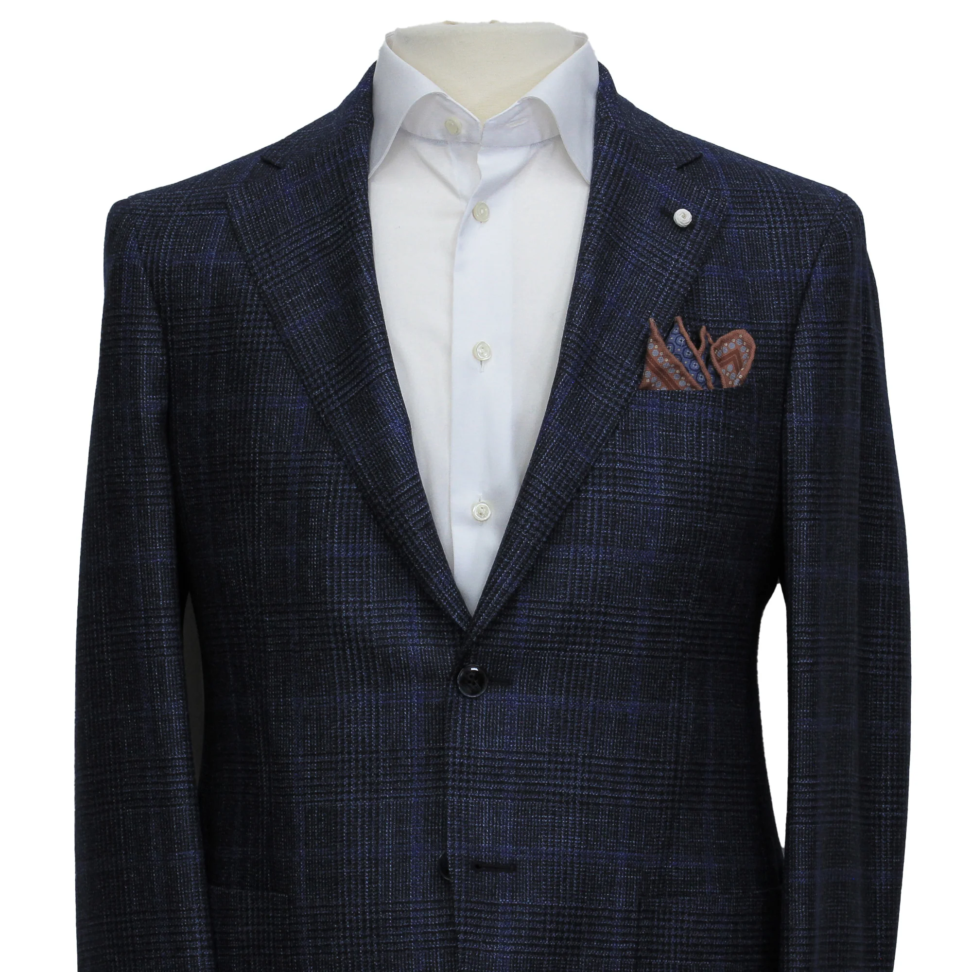 This luxurious Navy Prince-of-Wales Jacket by Luigi Bianchi Mantova is a great addition to your semi-formal wardrobe.