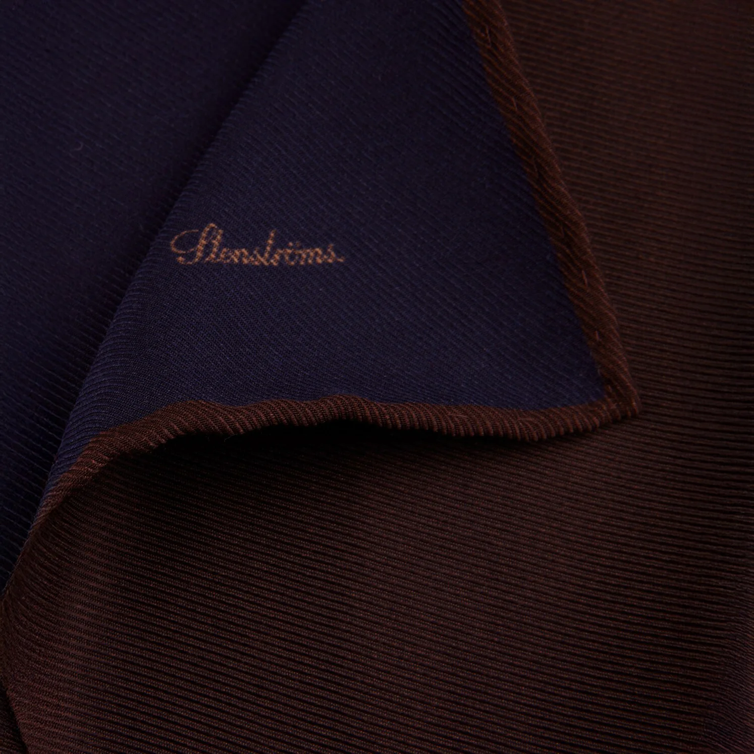 Navy & Brown Reversible Silk Hankie - Stenströms—