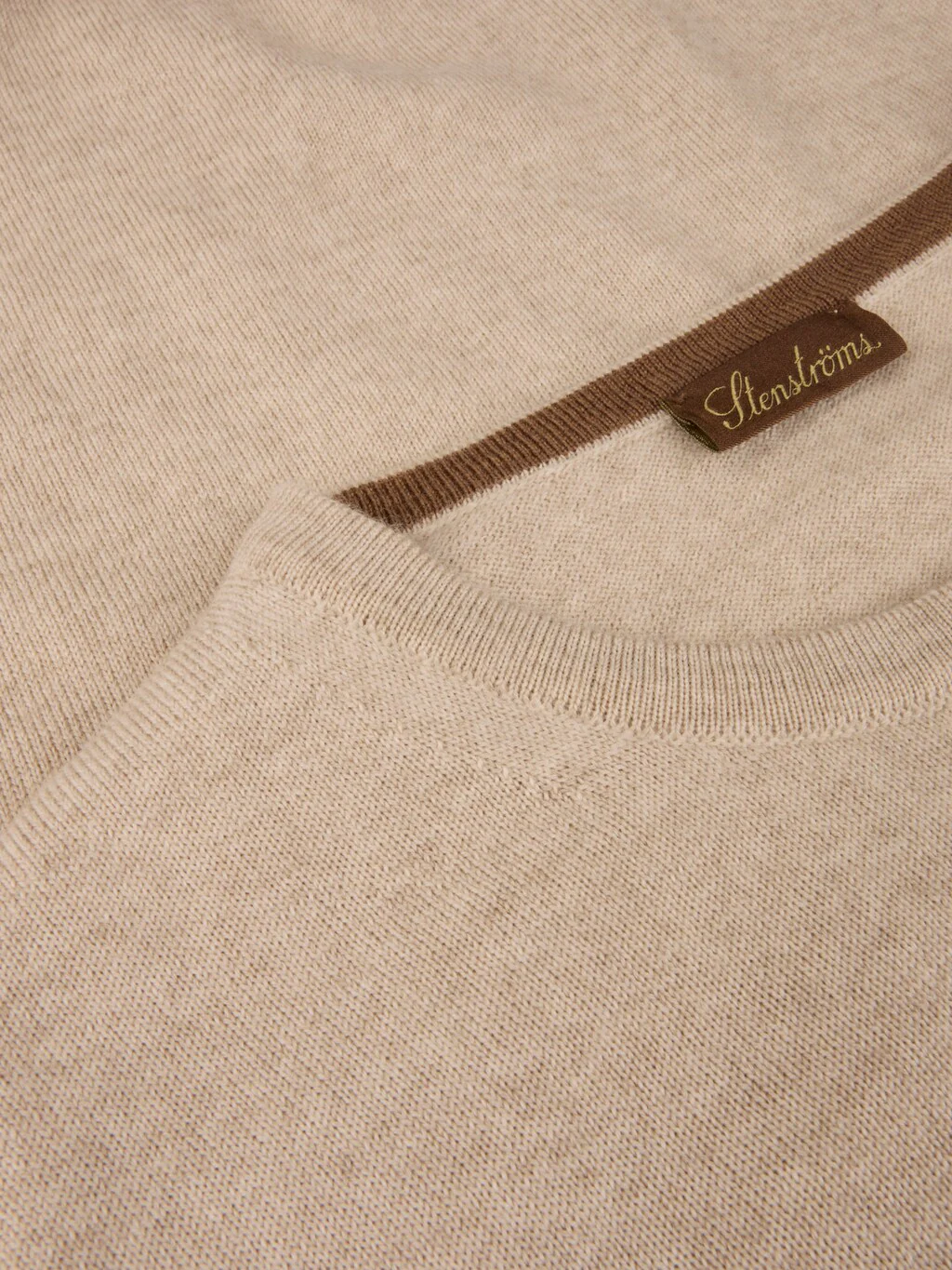 Oatmeal Merino Wool Crew Neck Sweater w/ Elbow Patches - Stenströms